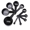 - 6 thìa trắng : 1/8 tsp, 1/4 tsp, 1/2 tsp, 1 tsp, 1/2 tbs, 1tbs