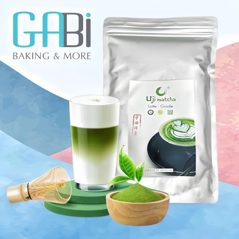 Bột trà xanh matcha Uji Latte Grade được sản xuất tại Nhật Bản trên dây chuyền hiện đại, dùng trong pha chế, làm bánh, làm kem, đắp mặt nạ,...