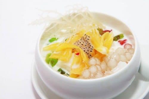 Trân châu ăn kèm với sữa chua dầm hoa quả