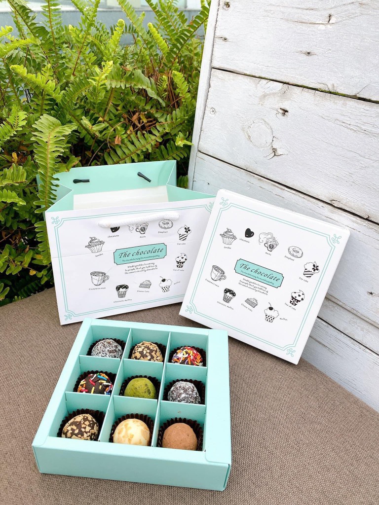 Hộp dùng để đựng socola viên, truffle, nama. Hộp có thiết kế đơn giản nhưng vẫn không kém phần độc đáo, bắt mắt.