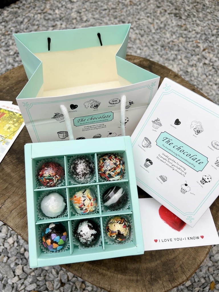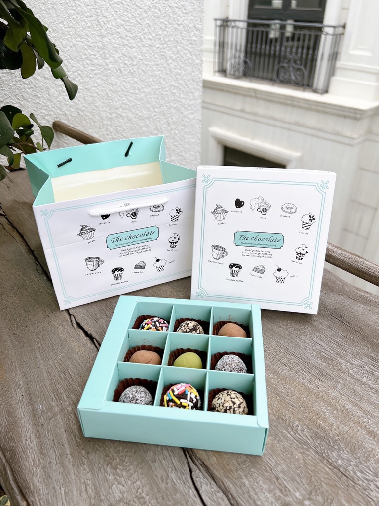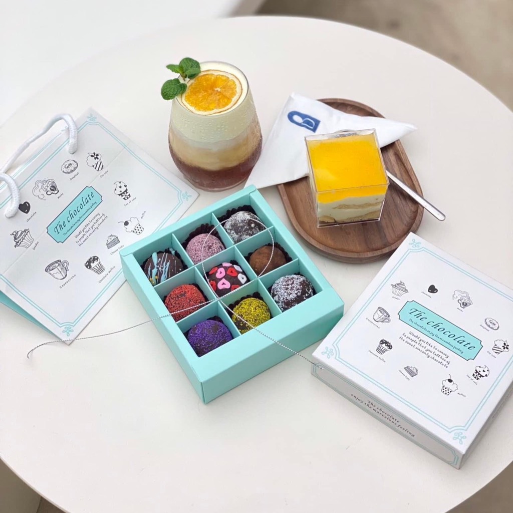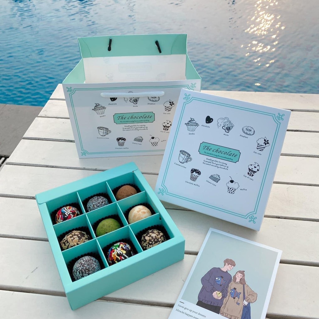 Túi hộp đựng socola 9 viên The Chocolate xanh
