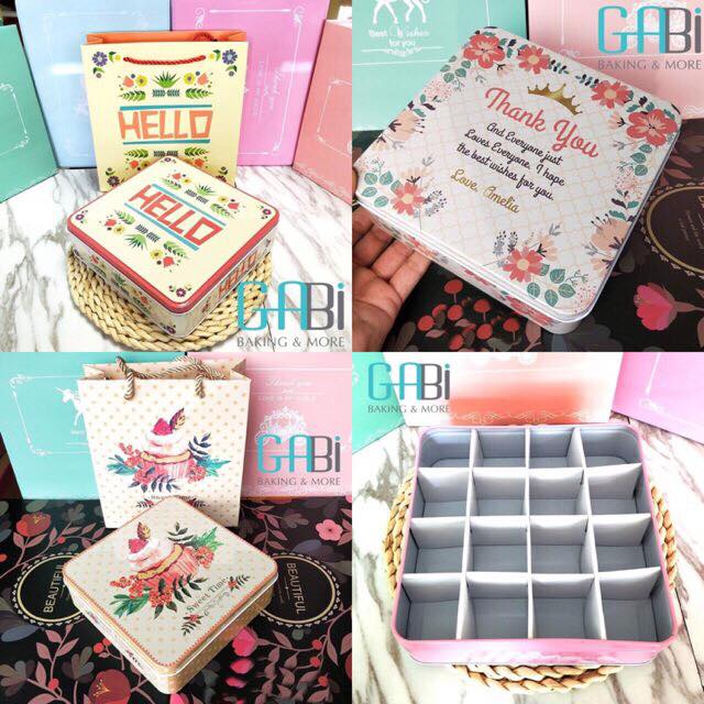 Hộp thiếc vuông đựng bánh kẹo 17x17x6cm