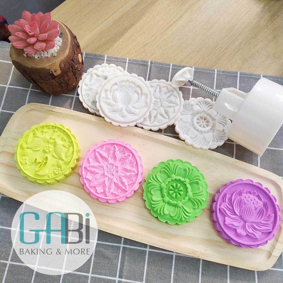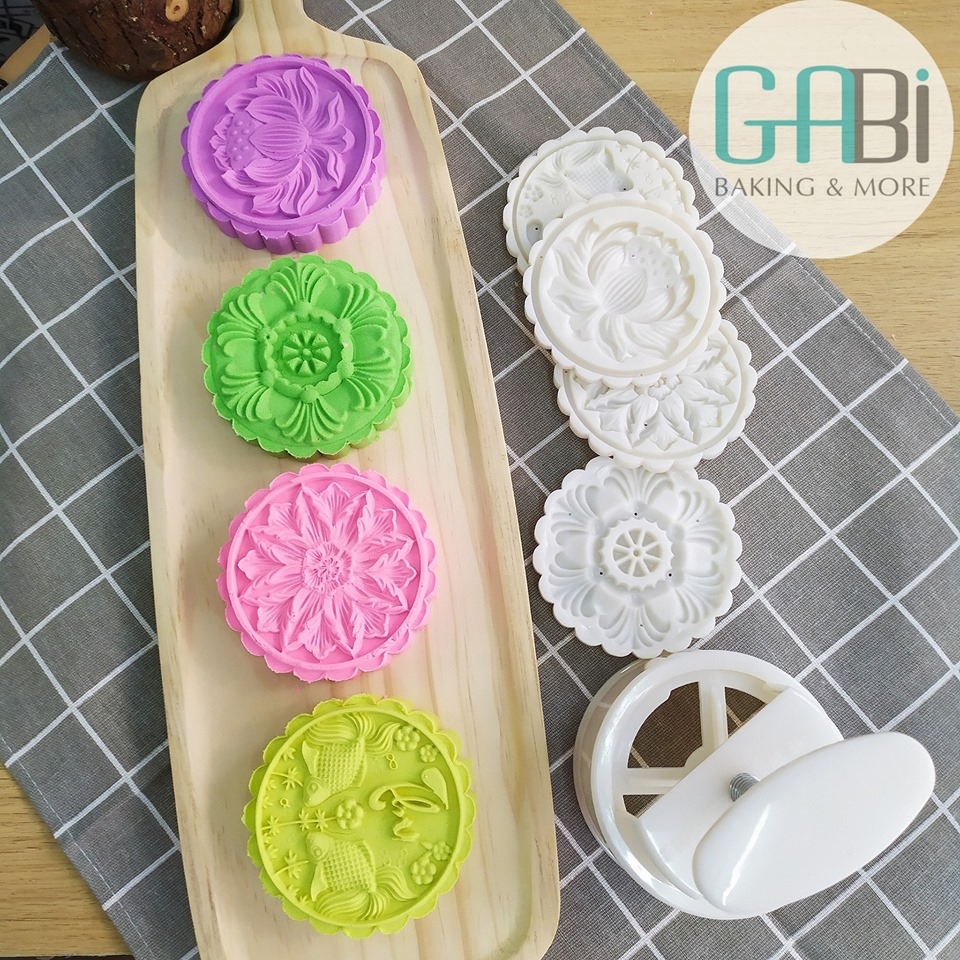 Khuôn trung thu lò xo 4 mặt hoa sen-cá chép 200g