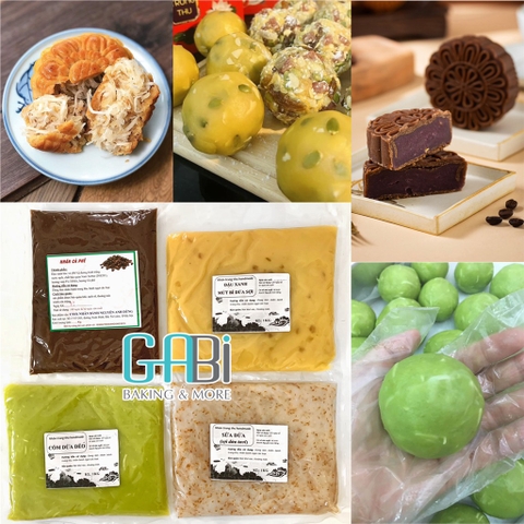 Nhân trung thu sên sẵn handmade có thành phần chính được làm từ đậu đỗ, dừa tươi bào sợi, bí, cốm, cà phê,....tạo nên nhiều loại nhân bánh trung thu đa dạng, mới lạ.