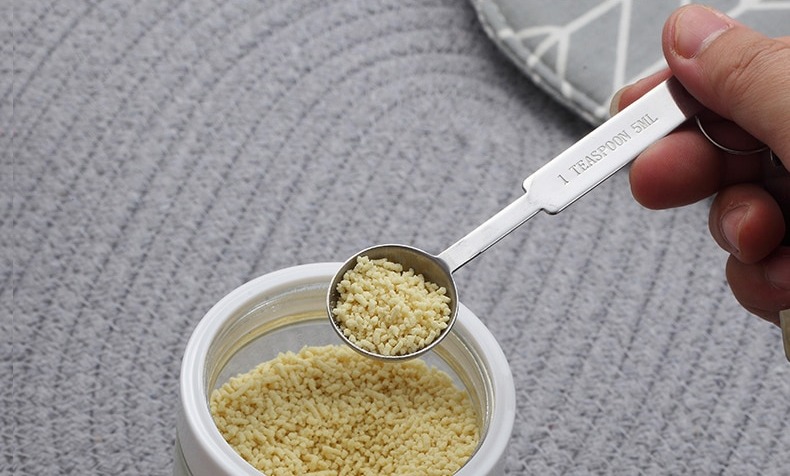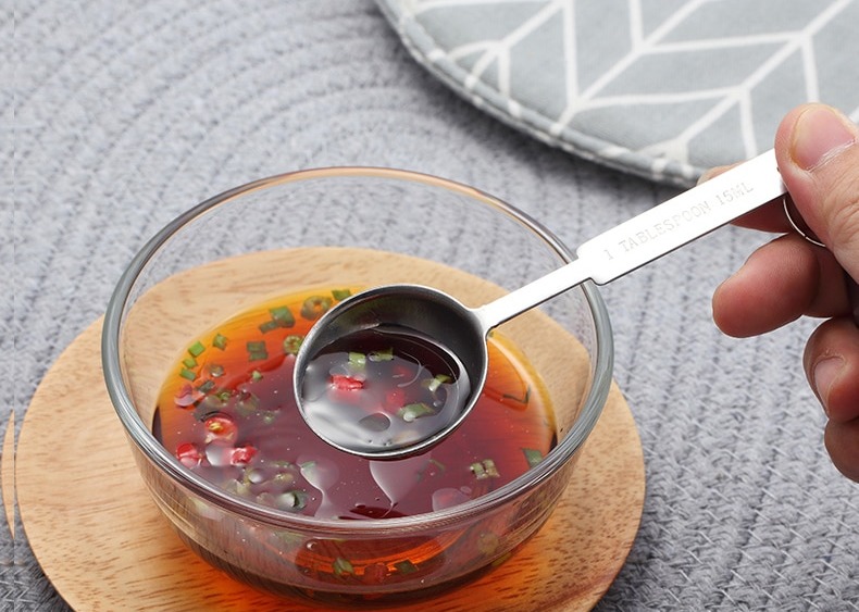 - Dung tích của các muỗng lần lượt là 1,2ml - 1/4 tsp, 2,5ml - 1/2 tsp, 5ml - 1tsp, 15ml - 1 tbsp. Dung tích của từng muỗng được in chìm trên các thìa giúp bạn dễ dàng phân biệt và sử dụng mà không sợ nhầm lẫn.