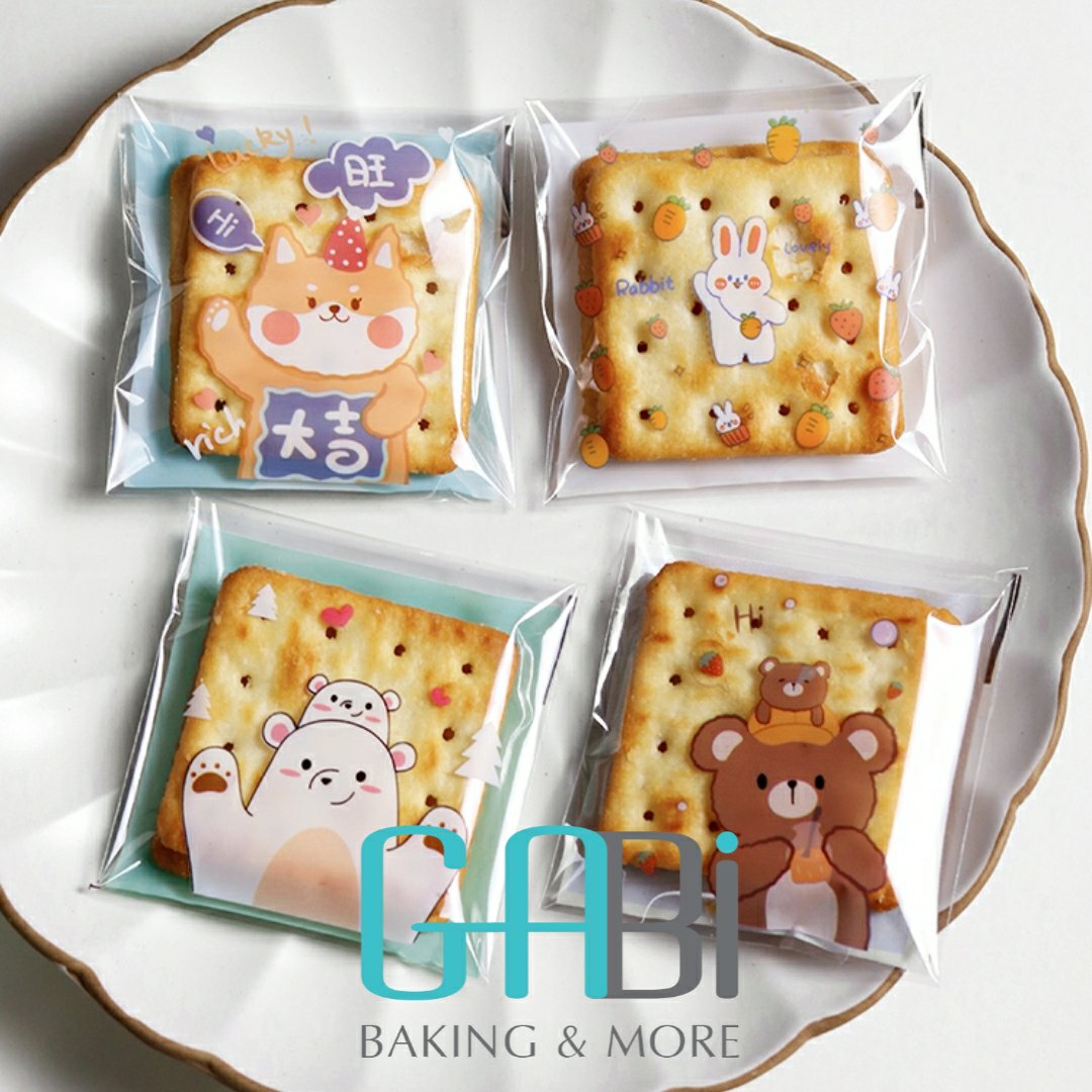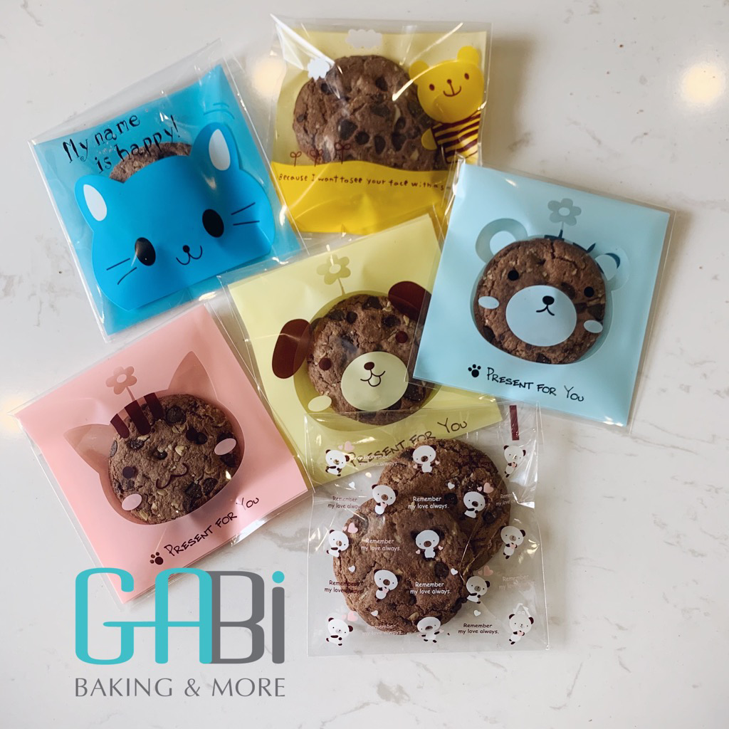 Túi đựng cookie mép dán hình động vật 10*10cm